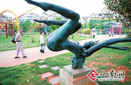 昆明公園出現裸體雕塑造型詭異 市民稱看不懂(圖)