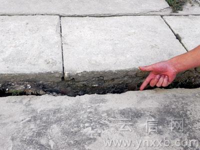 5月8日上午,記者在施工現(xiàn)場(chǎng)看到的是,挖掘機(jī)正在作業(yè),基坑的開(kāi)挖已經(jīng)成形,進(jìn)出小區(qū)的通道不過(guò)2米左右。由于基坑的開(kāi)挖沒(méi)有坡度,基坑四周的泥土開(kāi)始下滑,施工方用一些木樁做圍欄來(lái)?yè)踝∧嗤恋南禄T谛^(qū)2棟的通道處,可以看到一條明顯的裂縫,通道地坪與房屋底部錯(cuò)開(kāi)大約5厘米左右,在整棟房屋中間的沉降縫也出現(xiàn)明顯的裂縫,尤其小區(qū)一棟房屋的沉降縫,站在房屋前面可以透過(guò)縫隙看到后面的光亮,抬頭看整棟房屋的屋頂,沉降縫一側(cè)的房屋有些前傾。
