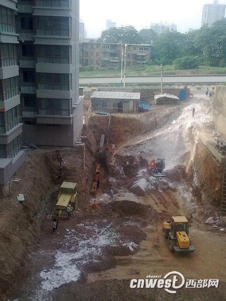 據中國之聲《央廣新聞》13時25分報道,西安長安區自來水公司緊鄰一棟30層高的住宅樓違規深挖蓄水池,小區業主及網友將之稱為“樓坑坑”。