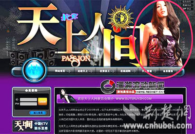 上月,北京天上人間被查封后,網(wǎng)民紛紛上網(wǎng)了解天上人間更多信息。上月22日,有網(wǎng)友點(diǎn)開天上人間官網(wǎng),發(fā)現(xiàn)彤彤的照片竟被掛在首頁(如圖)。該網(wǎng)友當(dāng)即在貓撲網(wǎng)發(fā)帖爆料,并迅速引起網(wǎng)友廣泛關(guān)注。