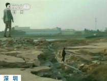 深圳河堤坍塌位移70米 路面出現巨大裂縫