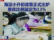 海淀小升初政策正式出爐 推優(yōu)比例敲定13%