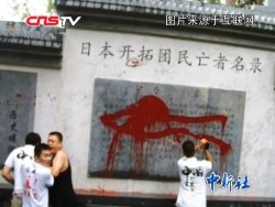 8月5日,經過幾次溝通,方正縣有關部門才允許中新社記者,進入被封鎖的中日友好園林內。記者在現場可以看到,方正縣設立的“日本開拓團民亡者名錄墻”經過網友“潑漆”后,受損的名錄墻已經被遮擋起來,一般外人不允許進入園林內。