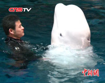 【解說】祭海儀式結束后,湖面上幾艘龍船開始比賽,白族小伙們在鑼鼓聲中奮力地劃著槳。一百多艘漁船出海,漁民們用魚鷹、手撒網等傳統方式捕魚,魚鷹們一個猛子扎在水里,沒一會兒就捕到了大魚,捕到魚的魚鷹總能得到岸上觀眾們的歡呼。很多游客從來沒參加過開海節,看到這么傳統的民族文化活動也覺得非常地新鮮。