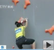 【解說】隨著裁判員的一聲令下,最具觀賞性的難度賽在兩位外國選手的精彩表演中開賽。崎嶇陡峭的巖壁上,兩人猶如空中猿猴,一次次挑戰難點,比賽按攀爬高度計算排名,順利到達終點的有望進入決賽,而稍有不慎摔落的就會引起一陣驚呼。