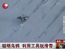 聰明烏鴉自制滑雪板玩滑雪