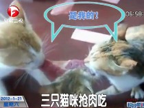 三只貓咪搶肉吃 你爭我搶都不示弱