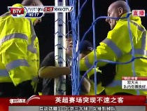 英超球迷沖進場內用手銬把自己鎖在球門上