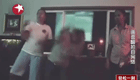 當天下午2點多,來賓市消防官兵接警后,迅速前往處置。在現場,一輛五菱面包車被卡在超市斜坡的門口處,其右邊前后兩個輪胎已經爆裂,擋風玻璃也被撞碎。一名被撞行人遭困在面包車和防護欄之間動彈不得。