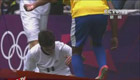 奧運足球場 兩球員鞋帶相互“糾結”