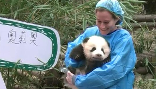 "奧運熊貓"首次亮相 獲名"奧莉奧"