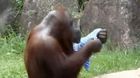 可愛母熊沒吃飽 招手讓飼養員上菜