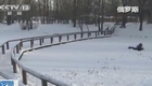 呆萌大熊貓滑雪取樂