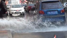 拍客:馬路現“噴泉” 司機忙洗車