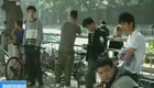 城管執法老板娘倒地 老板怒圍執法車