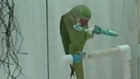 實拍:鸚鵡用牙刷給自己刷牙