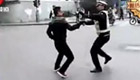 實拍南昌違章摩托司機揮刀追砍交警
