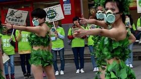 實拍:美女綠葉遮體長沙街頭熱舞