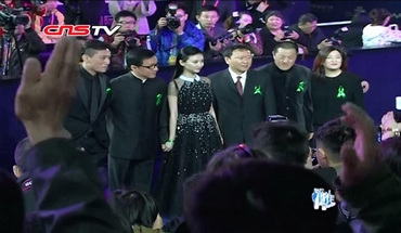 成龍領銜眾明星戴綠絲帶為雅安祈福