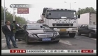 豪華奔馳超車撞上攪拌車 眾人抬車疏通道路