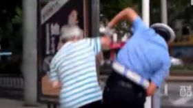 闖紅燈老漢大戰(zhàn)協(xié)警 吐痰打“太極”