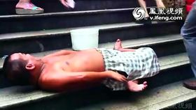 男子赤背“貼地爬行”臺階 路人無視