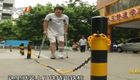 監拍:男子夜歸 被小區鐵鏈絆成骨折