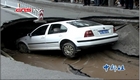 河北保定大雨致道路塌陷 轎車被“吞噬”