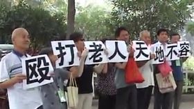 老人遭年輕人暴打 眾老人舉牌抗議