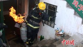 實拍消防官兵從火場徒手移出噴火煤氣罐