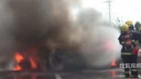 實拍高溫天奧迪車馬路上自燃