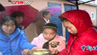 青島爆燃事故居民雨中領飯
