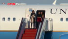 美第一夫人米歇爾抵京 著拼色連衣裙揮手致意