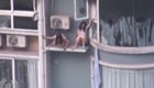 實拍:高樓發火 婆媳穿內衣躲空調外機被救