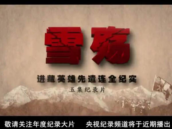 《雪殤·進藏英雄先遣連全紀實》4月16日起在中央電視臺第九頻道(紀錄頻道)播出,中國新聞網(wǎng)為本片網(wǎng)絡首播媒體。