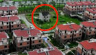 航拍蘇州一釘子戶被別墅群包圍 每天趟河進出