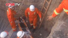 新疆一醉漢凌晨跌落深坑 消防架梯成功營救