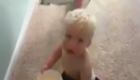 實(shí)拍小學(xué)生腳踩旱冰鞋手拉公交借力滑行