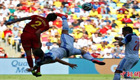 美女主持人直播球賽 被足球砸中腦袋