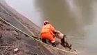 醉漢跳渠 消防員“約酒”哄其上岸