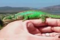 變色龍在主人指尖誕下幼崽