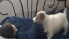 【同期】(臺(tái)灣藝人 陳志朋)有一點(diǎn)點(diǎn)父愛(ài)的味道吧!剛才舔我身上,覺(jué)得很好玩,很幸福,很像抱了一個(gè)嬰兒一樣。因?yàn)槠鋵?shí)它們很可愛(ài),就是跟小孩子一樣,就是用抓的。