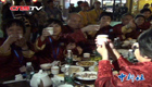 【解說】記者在現場了解到,此次前來觀看話劇的觀眾有1100人左右,80后、90后的女生居多。由于原著中主角吳邪和張起靈之間的互動是一條重要線索,更是擁有大批特定粉絲,所以在話劇現場,每每他們倆有所互動時,場內掌聲與女生的尖叫聲總是尤其熱烈。整場演出,通過舞臺造型、多媒體特效和特技演員的表演營造出了詭異驚悚的氣氛,獲得眾多粉絲好評。