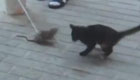 實拍小貓碰到老鼠怕得到處亂竄