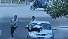 實拍:瘋狂偷車賊開車頂交警一路狂奔1公里