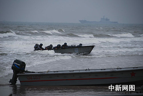 4月3日上午,美國海軍陸戰隊司令詹姆斯·康威上將一行在南海艦隊司令員蘇士亮中將陪同下,專程到南海艦隊野外兩棲登陸訓練場,參觀中國海軍陸戰隊某旅的軍事演練和海軍某部的反恐演練。
