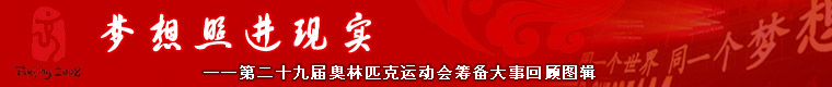 從申奧夢(mèng)圓到圣火傳遞,在過(guò)去的7年里,中國(guó)人的奧運(yùn)夢(mèng)想逐步走進(jìn)現(xiàn)實(shí)。8月的北京必將成為世界的焦點(diǎn),放射出炫目的華彩。在進(jìn)入奧運(yùn)倒計(jì)時(shí)100天這樣一個(gè)特別的時(shí)刻,讓我們共同回顧奧運(yùn)籌備歷程,重溫這7年來(lái)夢(mèng)想成真的每個(gè)精彩瞬間……
