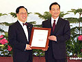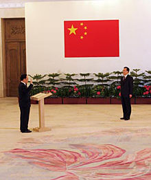 6月24日上午9時,香港特區行政長官曾蔭權就職儀式在人民大會堂香港廳舉行。曾蔭權向溫家寶總理宣誓就職。溫家寶總理向曾蔭權頒發了中央人民政府任命書