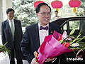 圖:曾蔭權宣誓就職后喜氣洋洋走出人民大會堂(6月24日15:03)