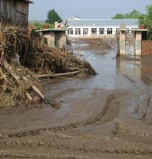 圖:洪水沖襲過的沙蘭鎮小學(6月13日 15:35)